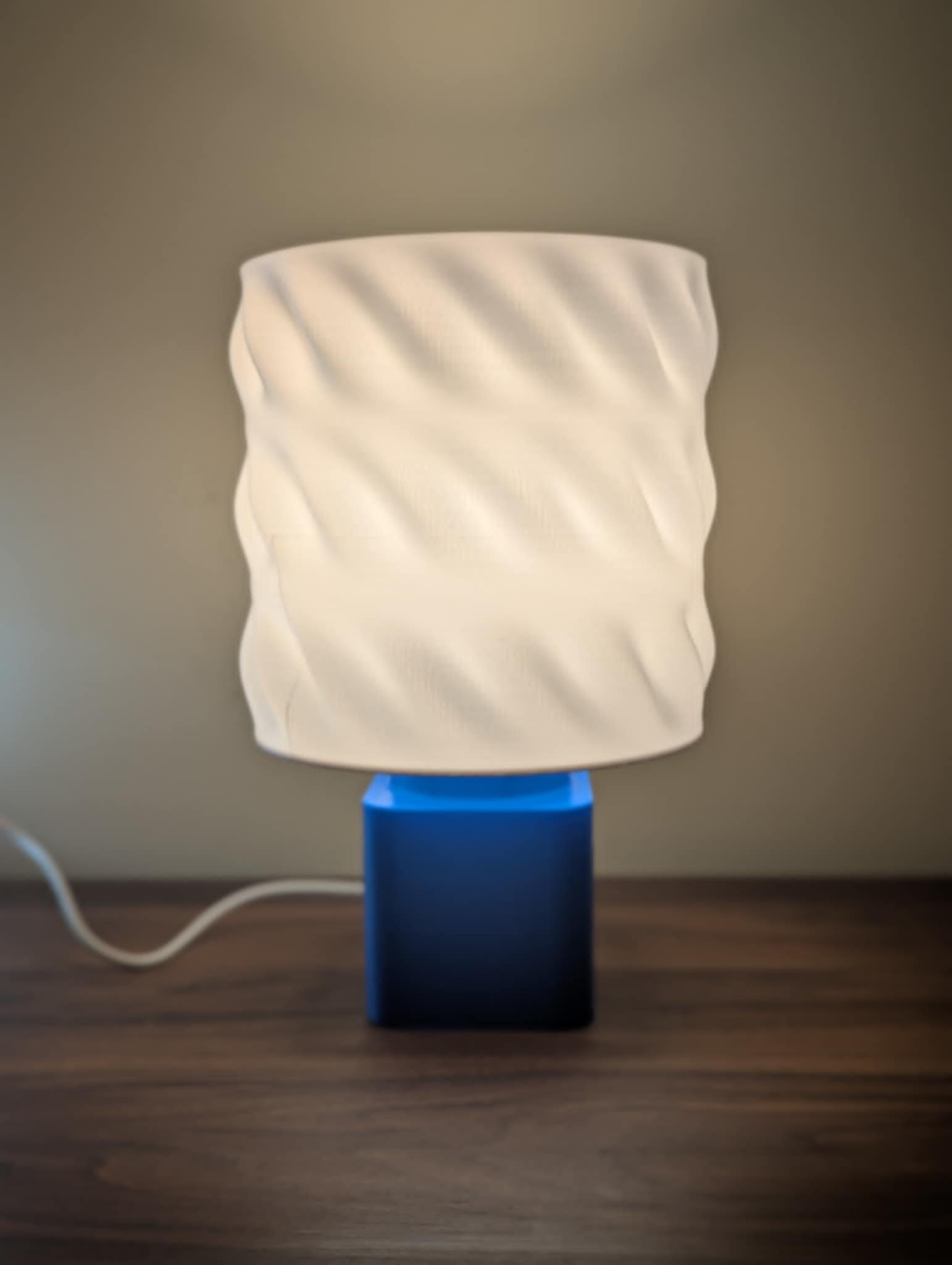 Materiale: plast (PLA+) Farge: Hvit skjerm, blå bein lyskilde: E27 sokkel (med pære) størrelse: høyde: 320cm, bredde: 200cm ledning: 3,5 lang med eurokontakt bruksområde: innendørs montering: hvis trengs (enkel montering)