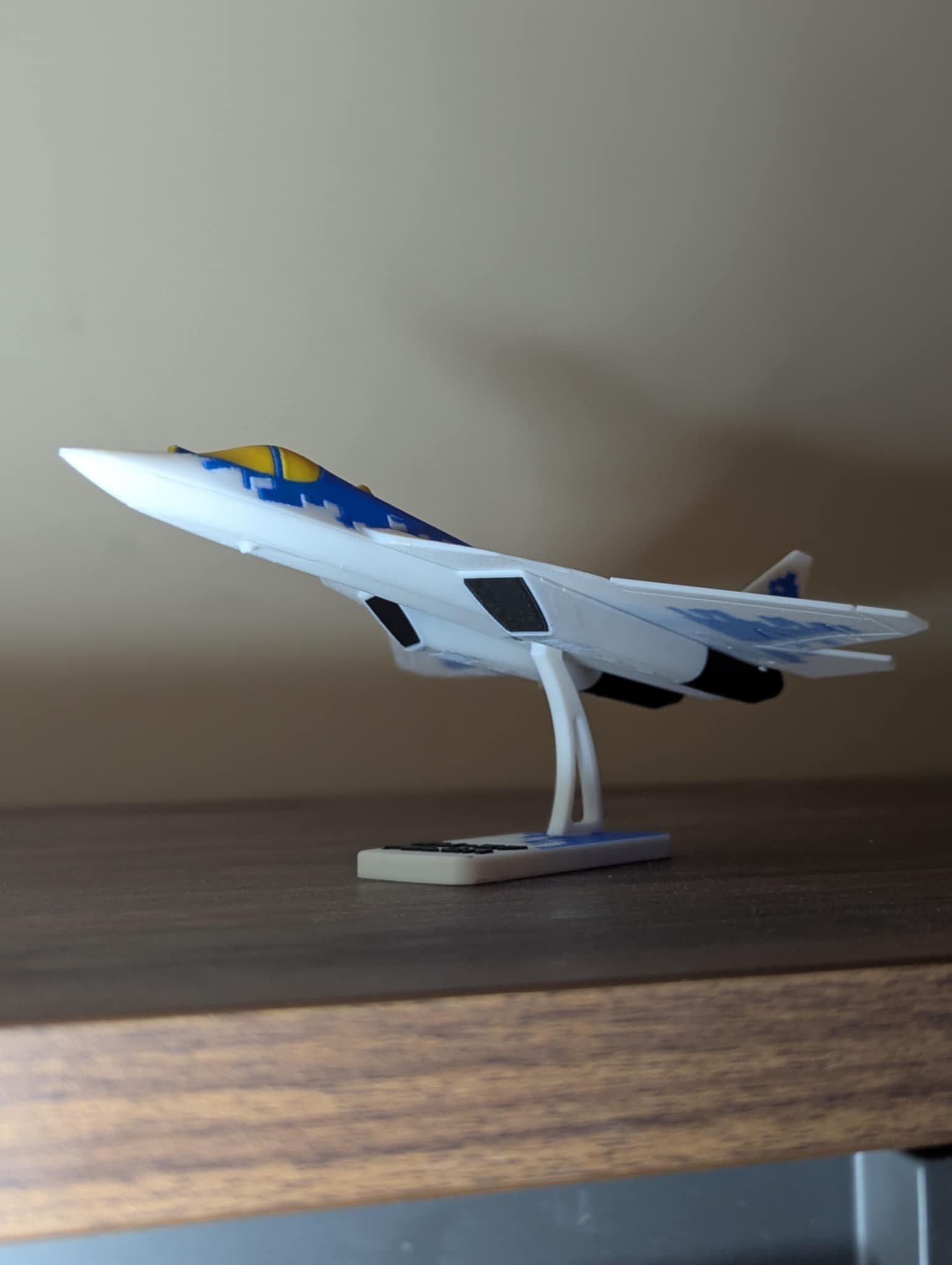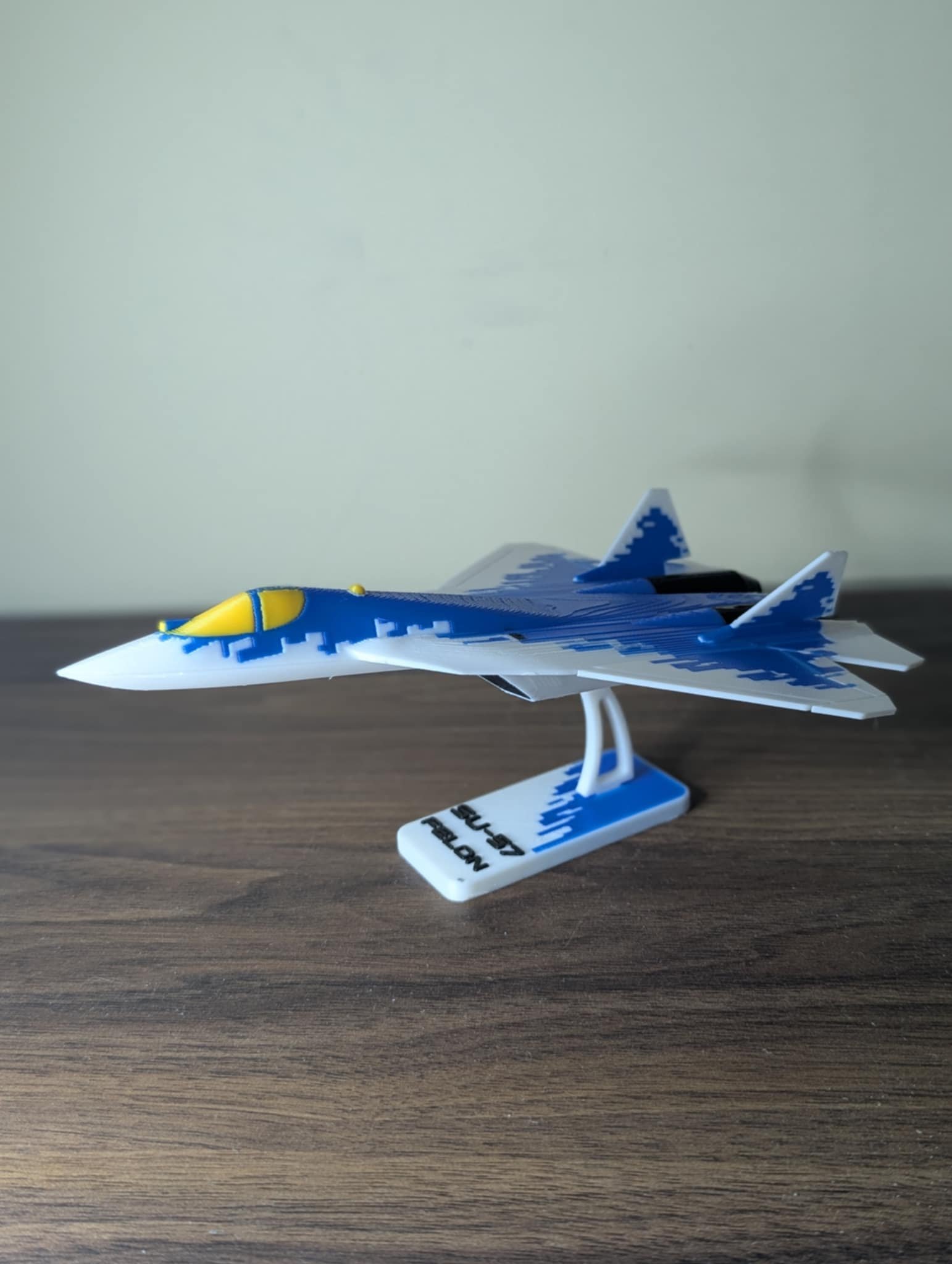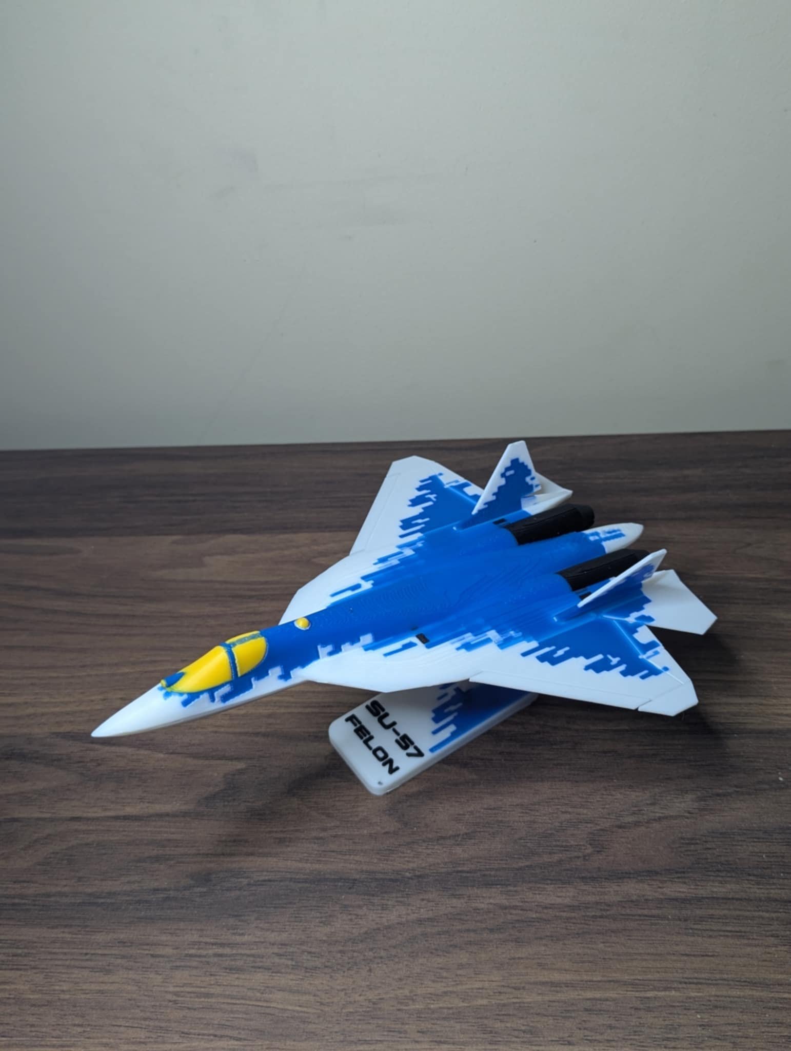 en fantastisk og stillig fly model av su-57 til huset ditt.   passer godt hvis du liker noe som fly eller har bare lyst til å få noe dekorasjon til huset ditt